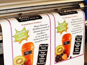 Digitally printed waterproof self adhesive vinyl is used for many indoor and outdoor applications. Printed vinyl can be cut into a shape at no extra cost (vector path required).